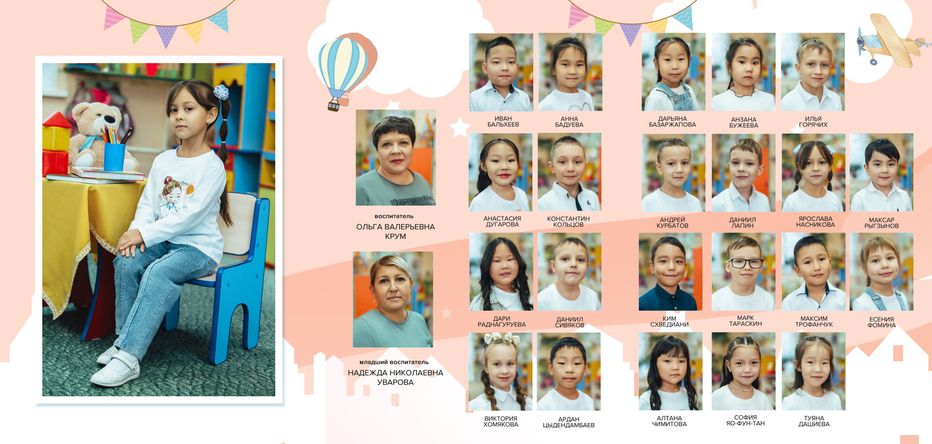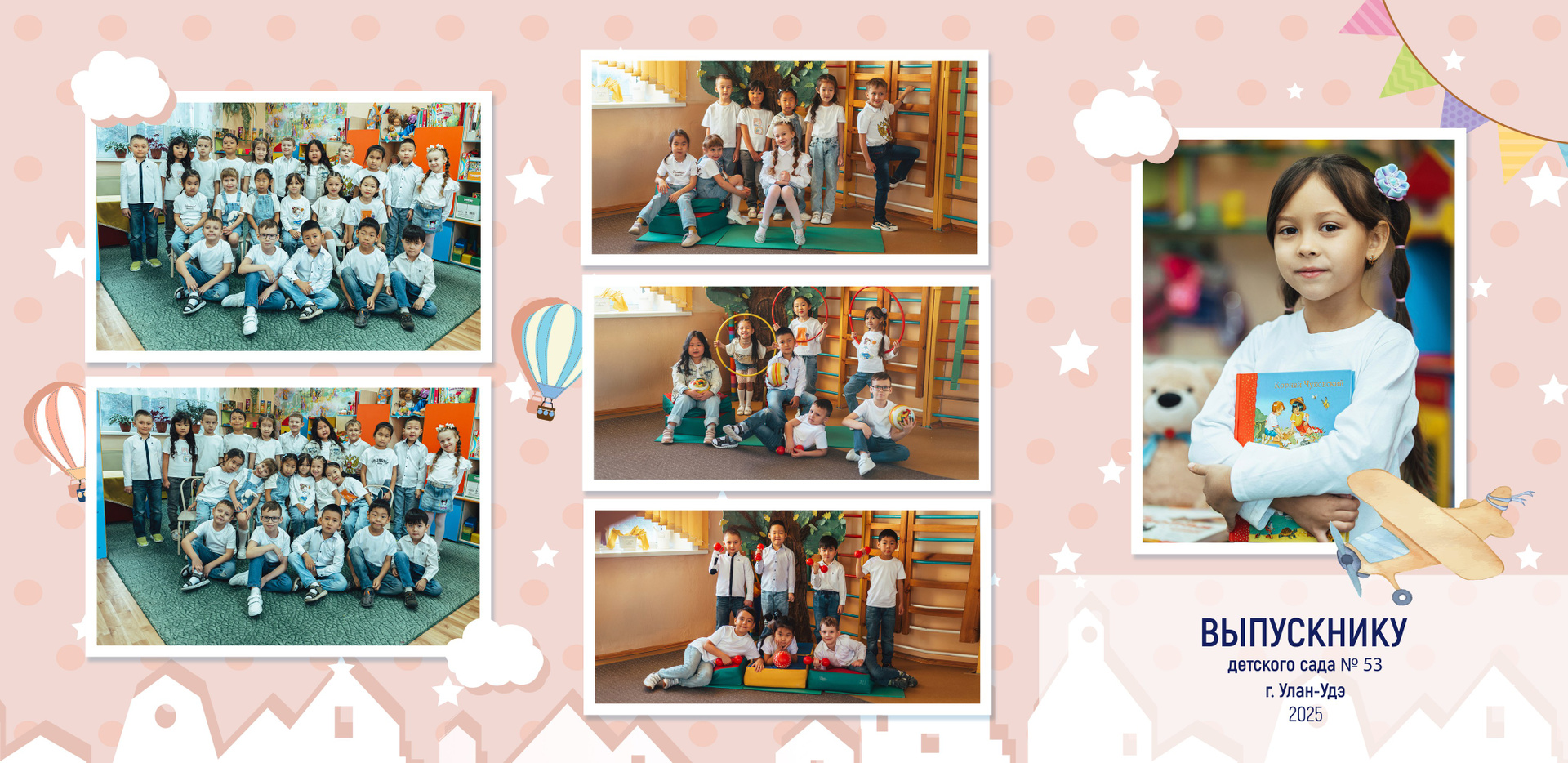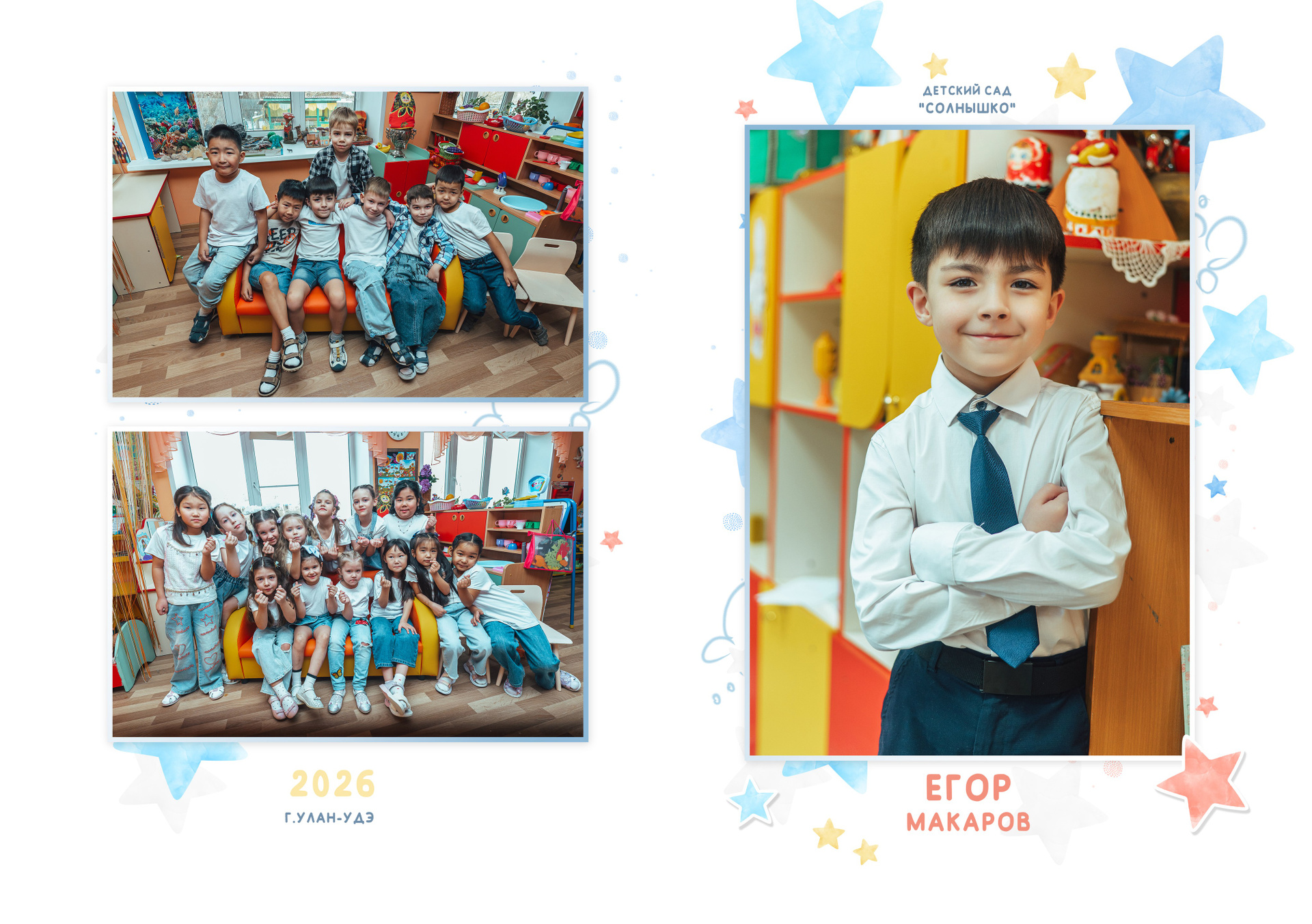 - Внутренний разворот: портрет выпускника и виньетка (портреты всех детей и воспитателя)